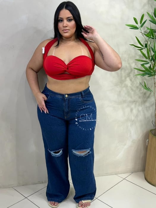 CALÇA JEANS WIDE LEG CAROLA PLUS