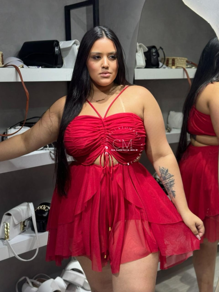 O conjunto no site não tem a opção de selecionar a cor vermelha, somente branco, preto e marrom