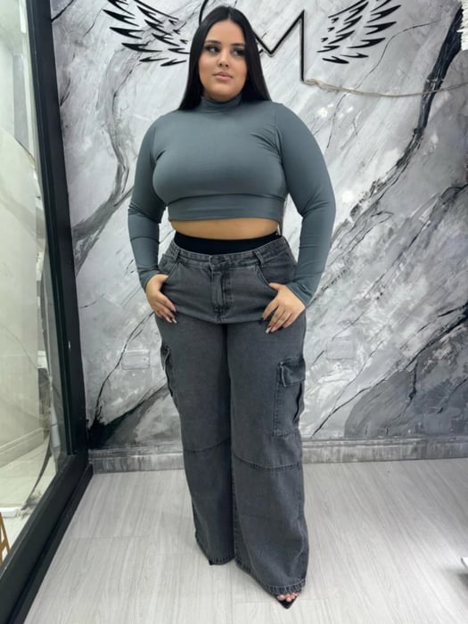 CALÇA JEANS WID LEG CARGO CARMELA PLUS