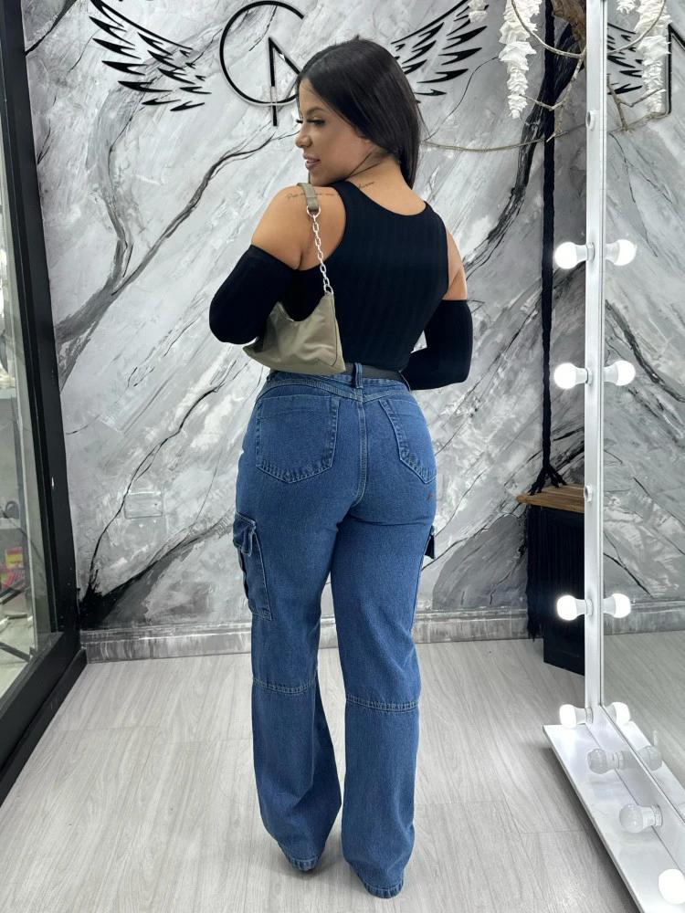 CALÇA JEANS WID LEG CARGO DEBORA SLIM